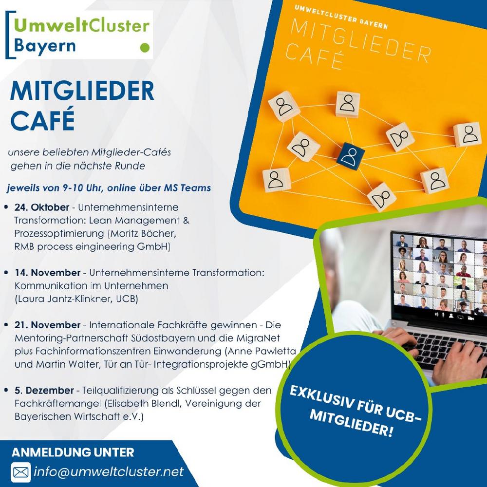 Fachkräftegewinnung und unternehmensinterne Transformationsprozesse – beides Themen die viele Unternehmen aktuell beschäftigen. Um seine Mitglieder bei diesen Herausforderungen zu unterstützen, möchte der Umweltcluster im Rahmen mehrerer Mitglieder-Cafés auf einzelne Aspekte dieser Themenfelder eingehen.
