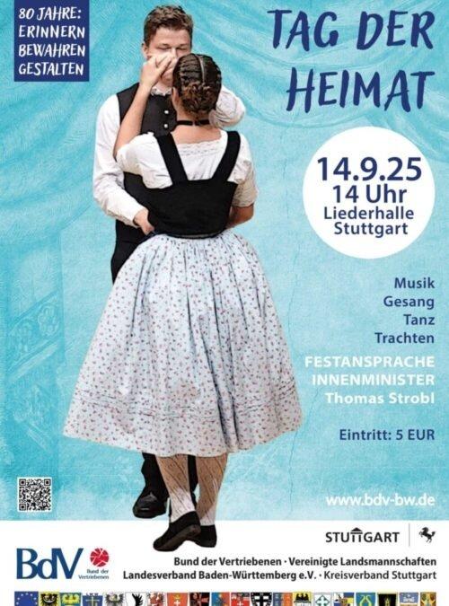 Der Bund der Vertriebenen (BdV) Landesverband Baden-Württemberg lädt herzlich ein zur zentralen Festveranstaltung zum Tag der Heimat in der Landeshauptstadt Stuttgart. Die Feier findet am Sonntag, 14. September 2025, um 14:00 Uhr im Hegelsaal der Liederhalle Stuttgart (Berliner Platz 3) statt. Einlass ist ab 13:00 Uhr, Eintritt 5 EUR. Die diesjährige Veranstaltung steht unter dem …