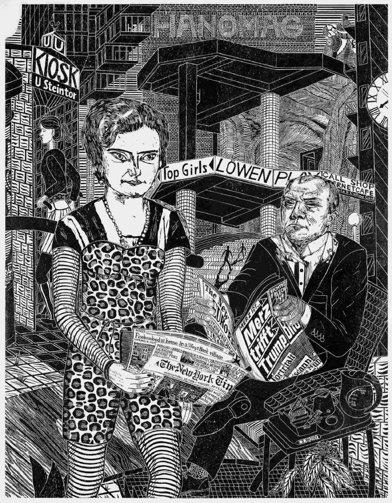 Die in Salzgitter geborene Gabriela Jolowicz gehört zu den wichtigsten Stimmen des zeitgenössischen Holzschnitts in Deutschland. Ihre großformatigen Schwarz-Weiß-Arbeiten verwandeln banale Alltagsszenen in Erzählungen voller Witz und Tiefe. Oft bezieht sie sich auch auf die Geschichte des künstlerischen Holzschnitts selbst und verwandelt historische Vorbilder in zeitgemäße Bilder. Mit feiner Beobachtungsgabe entschleunigt Jolowicz die visuelle Überladung unserer Zeit – und zeigt, wie das Alltägliche im Holzschnitt seine ungeahnte Tiefe entfaltet.